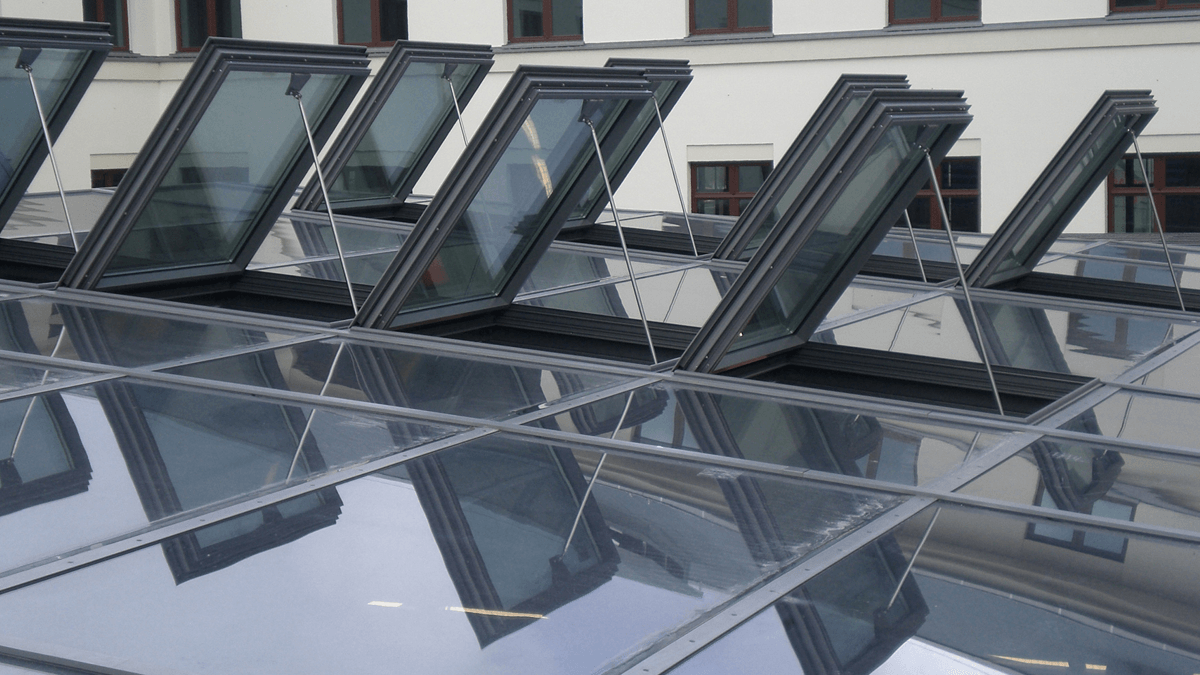 | Solutions: | CI System Glass Architecture KWS 60 SHEV flaps Pneumatic cylinders (tandem and individual) Building automation/CI Control Technology Temperature, wind and rain sensors CI System Light Architecture FE CI System Rooflight Dome Upstands with fans |
