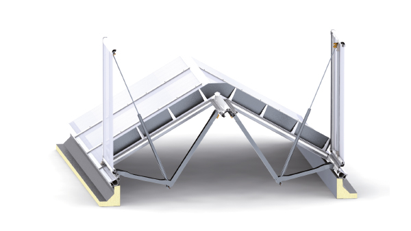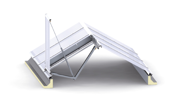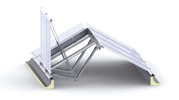 - Pneumatické nebo elektrické ovládání systémů klapek RWG s funkcí větrání